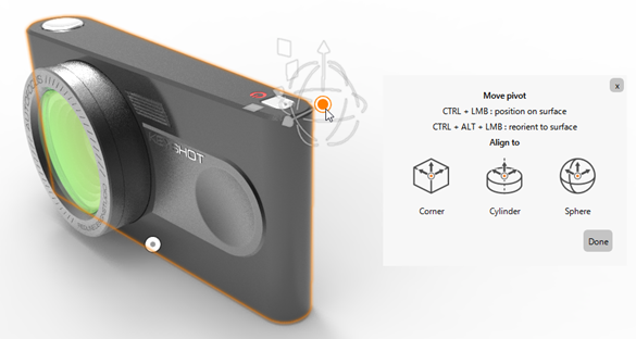 パーツやグループに対して、従来のローカル座標やセンターに加え、複数のカスタムピボットを設定できるようになりました。これらのカスタムピボットには名前を付けて管理でき、シーン内に保存されます。